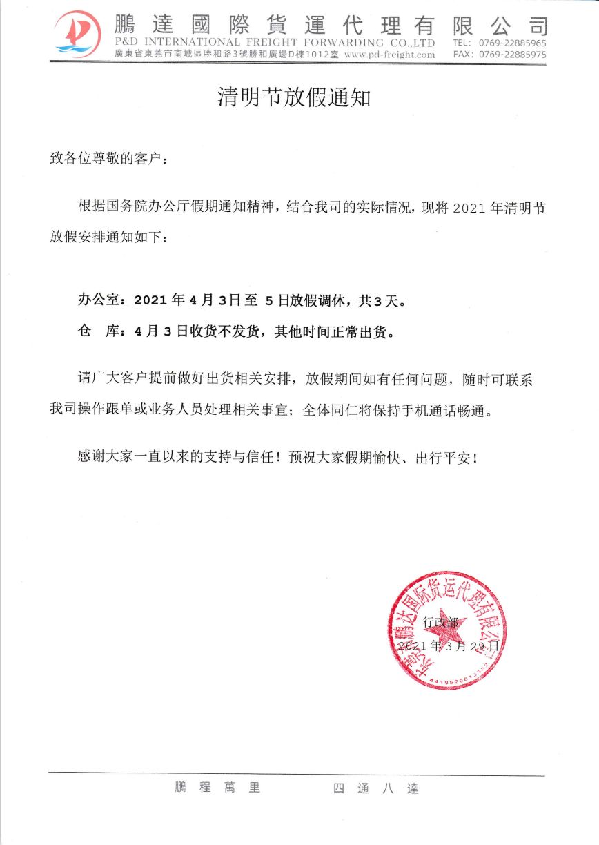 清明节放假通知