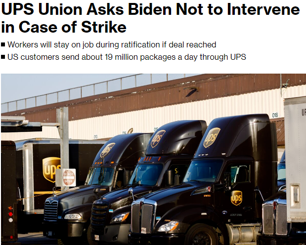 美国联合包裹(UPS)服务公司的工会主席呼吁工人做好罢工的准备。此举是因为卡车司机工会正争取提高兼职工资,这是延长一项五年劳资协议的最后一个主要争议点,该协议将于7月31日到期。工会主席表示,他要求白宫不要干预罢工。